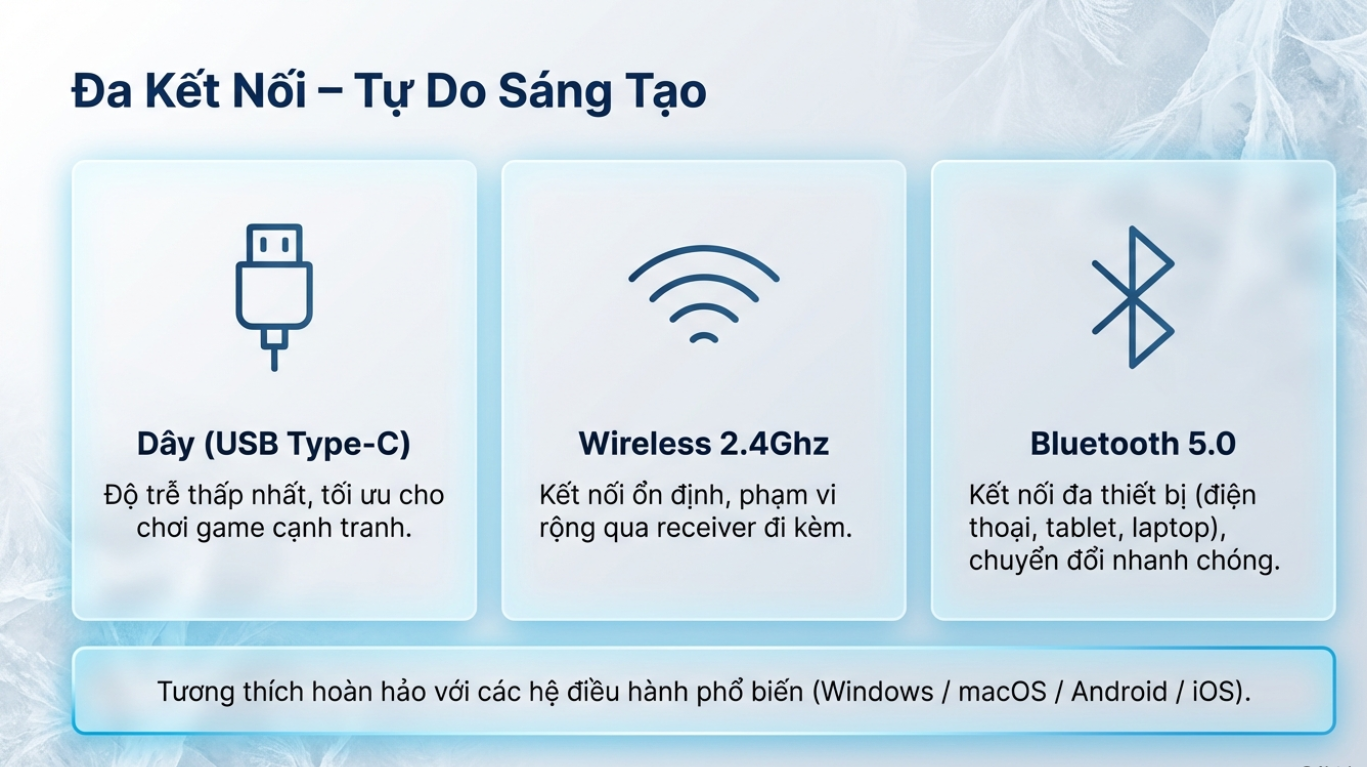 | Kết Nối | USB Type-C, 2.4G / Bluetooth |
